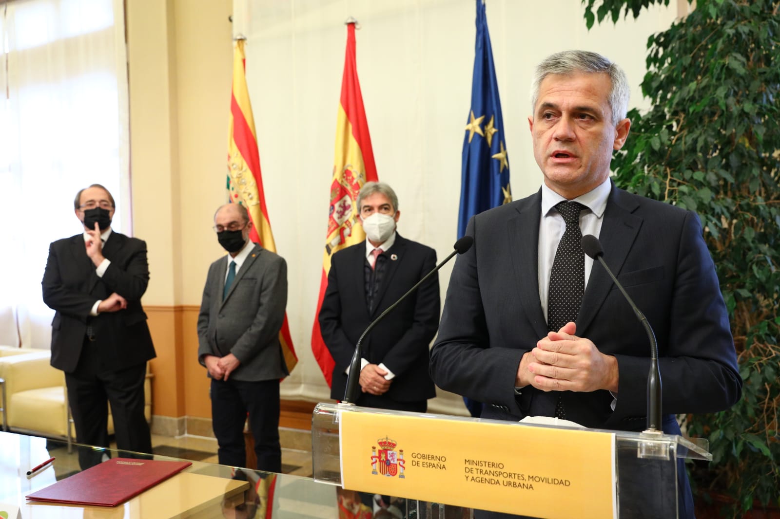 Con la firma del protocolo, que ha estado presidida por el presidente de Aragón, Javier Lambán, y el secretario general de Agenda Urbana y Vivienda, David Lucas, se pretende dar una respuesta inmediata a la elevada demanda de suelo para la instalación de actividades económicas y generación de empleo.